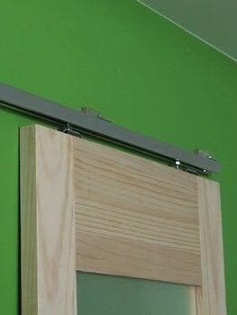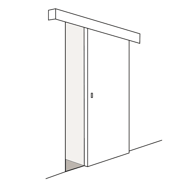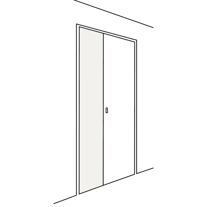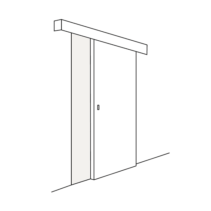 Fixée sur un rail, qui peut être au sol ou au plafond, la porte coulissante se plaque contre le mur et ne requiert pas de dégagement. Elle est tout à fait adaptée aux petites pièces.