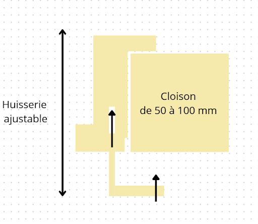 Ce bloc-pote comporte une partie extensible pour s'adapter à l'épaisseur de la cloison et assurer l'habillage du mur pour une finition totale.