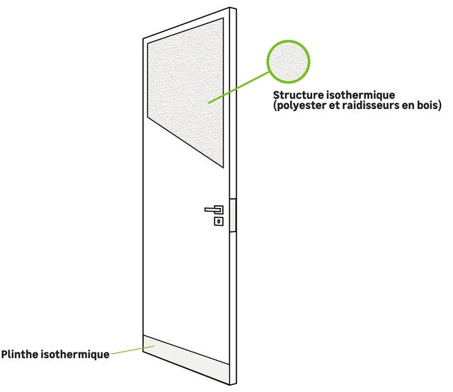 Certaines portes sont équipées d’un joint d’isolation sur huisserie, d’une plinthe acoustique et/ou d’une plinthe isothermique qui aide à atteindre un confort thermique et acoustique encore plus important.