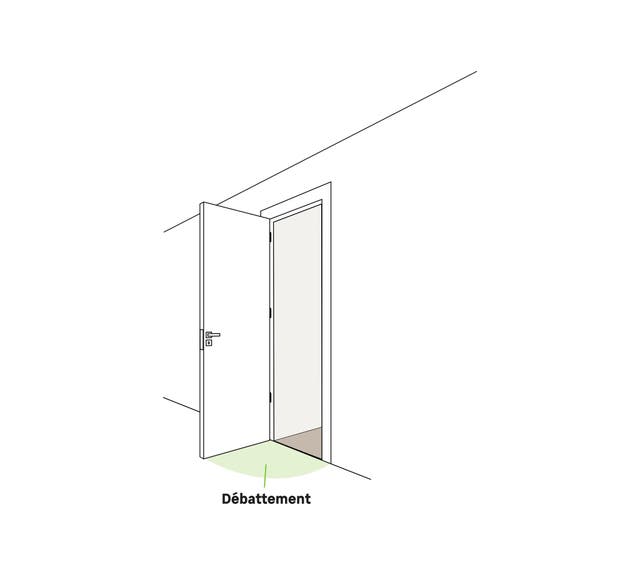 Le débattement est l’espace nécessaire pour que la porte s’ouvre facilement sans gêner la circulation dans la pièce.