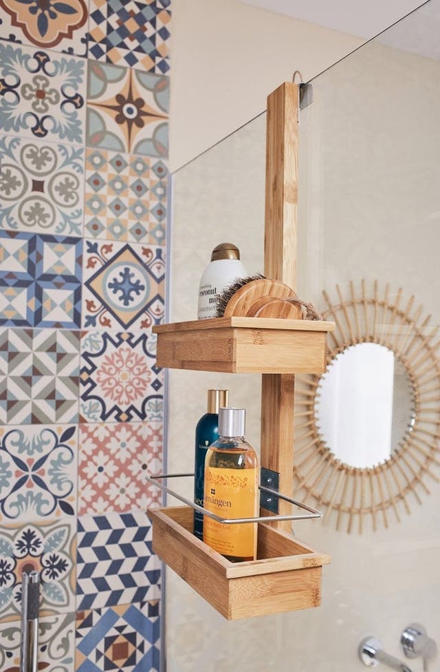 Le panier : pour y déposer le gel douche, le shampooing ou encore la brosse à dos.