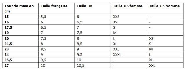 Pour une sécurité optimale, il est indispensable d'avoir une paire de gants ajustée à la taille de ses mains. C'est le tour de main exprimé en centimètres qui la définit.