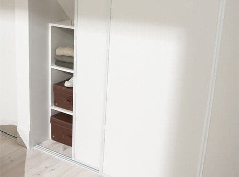 Ce kit vous permet d'aménager des rangements à portes coulissantes sous les combles lorsqu'il y a une pente ou bien sous un escalier pour avoir le rail à l'horizontal.