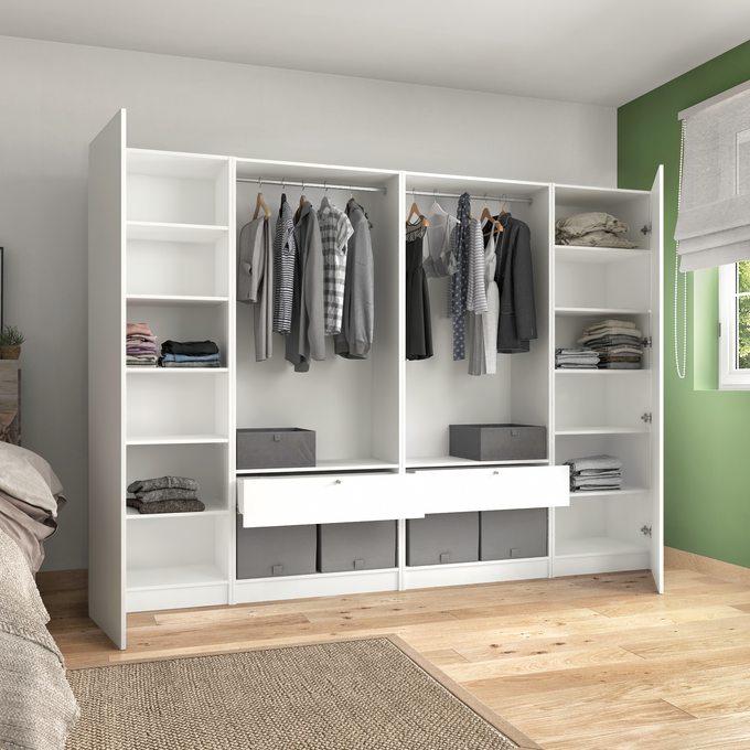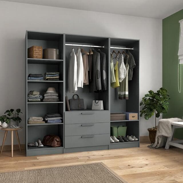 L’intérêt ? Le kit dressing est monté rapidement et vous trouverez forcément un modèle adapté aux dimensions de votre pièce et à vos besoins de rangement.
