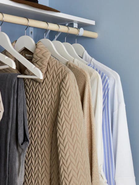 A savoir, pour faire vos calculs : une pile de linge plié, c’est 30 à 40 cm de large. Une chemise suspendue, c’est 90 à 100 cm de haut. Une veste ou un pantalon, c’est entre 110 cm et 120 cm de haut. Et pour les manteaux et les robes, c’est 160 à 170 cm.