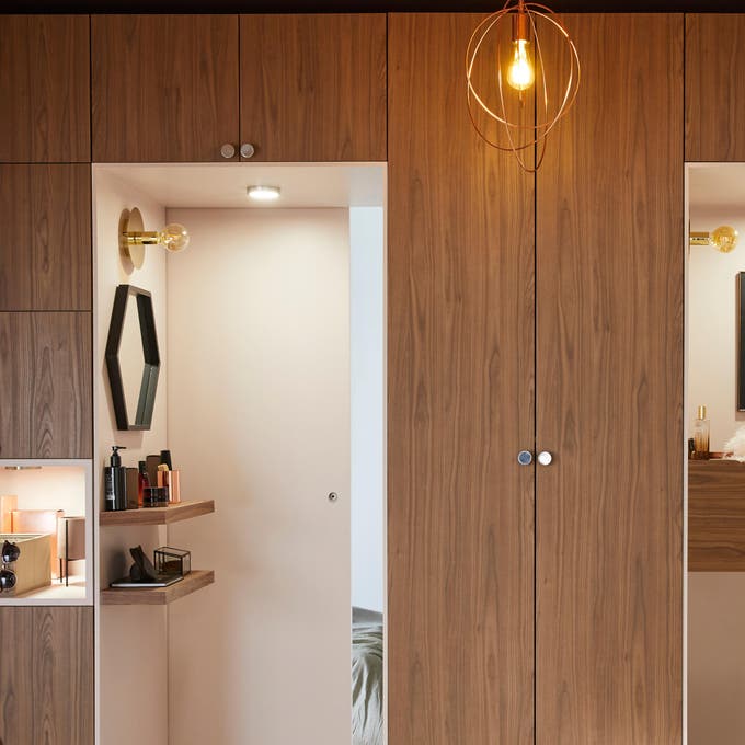 En revanche, si vous installez des portes ou si vous prévoyez une penderie, il faudra disposer de 60 cm de profondeur, de manière à ce que les portes se ferment sans gêner.