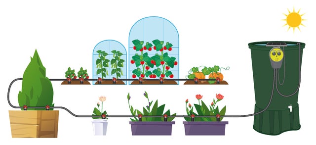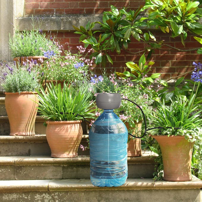 On trouve aussi des kits polyvalents d’arrosage pour balcons et terrasses, serres, massifs ou d'autres destinés à un usage précis. Certains fonctionnent sans robinet, et donc sans pression. Ils délivrent l’eau par gravité à partir d’un récipient, récupérateur d’eau ou d’un distributeur spécifique alimenté par des piles. Pratique, non ?