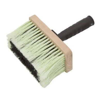 Brosse à encoller : en petit ou grand modèle, rectangulaire, elle possède des fibres le plus souvent synthétiques ; on la tient avec toute la main pour déposer la colle sur le papier ou bien sur le mur ; grâce à un petit crochet en plastique, elle peut s'accrocher sur le seau.