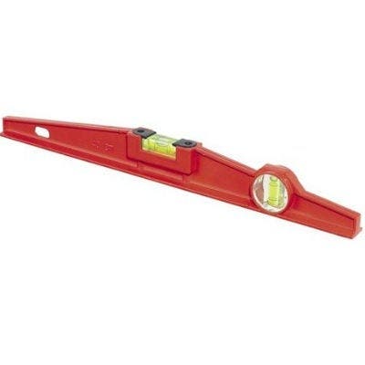 Niveau à bulle : placé le long de la règle, il permet de vérifier la verticalité avant de tracer la ligne de pose du premier lé.
