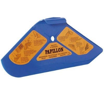 Palette : aussi nommée "couteau papillon", souple, elle peut servir à maroufler mais elle est surtout utile pour écraser les joints, en remplacement d'une roulette à joint, et pour lisser les angles du papier peint.