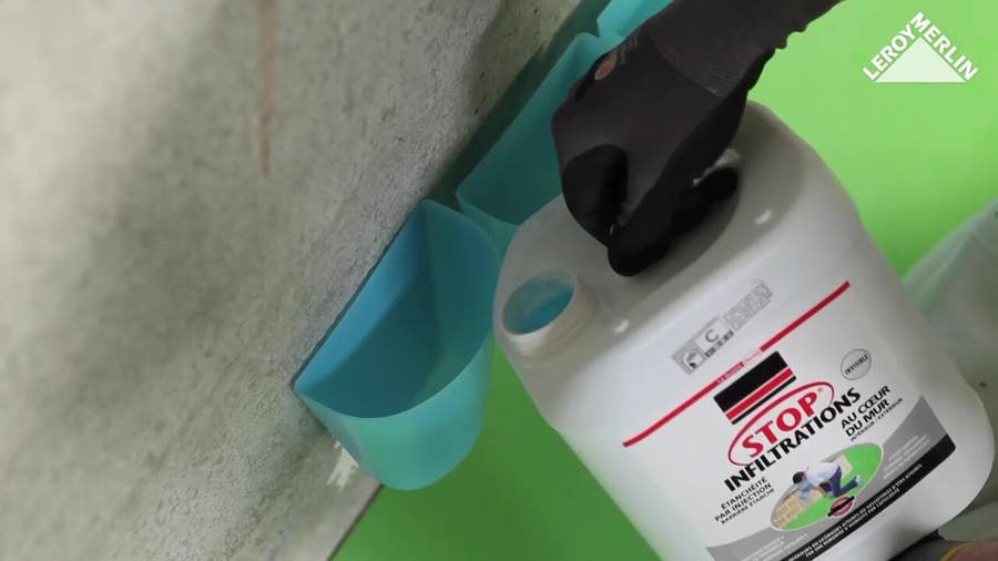 Traitement par injection de liquides préventif et curatif : à base de silicone et de résine, le produit se solidifie au contact de l'humidité. Permet de former une barrière étanche à l'intérieur des murs.