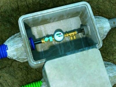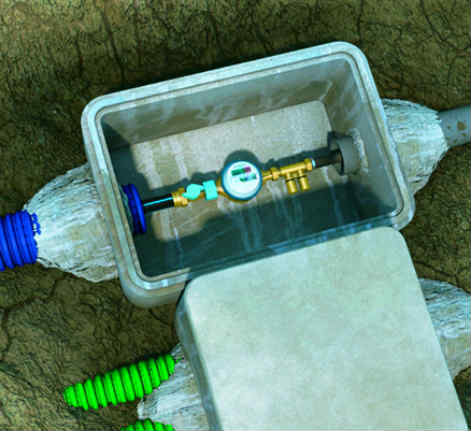 Il renferme le robinet d'arrêt, une bague de plombage, le compteur d'eau et une purge avec clapet anti-retour. L'ensemble doit être isolé pour éviter le gel.
