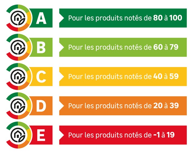Le résultat est exprimé sous la forme d’un score chiffré, sur une échelle de -1 à 100, où « 100 » correspond à la meilleure performance. Ce score chiffré est ensuite traduit en note (de E à A, avec « A » correspondant à la meilleure performance).