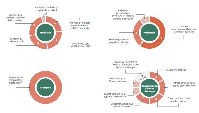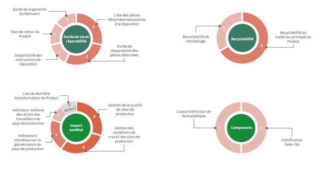 Si un produit est composé de plusieurs matériaux (bois et/ou textile et/ou résine), une moyenne des notes obtenues pour chaque typologie de matière sera calculée.