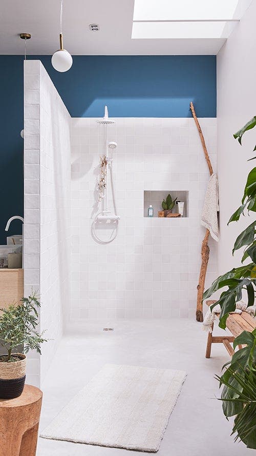 Et si vous aimez les couleurs fortes, vous pouvez les jouer par touches sur un fond blanc très lumineux. Sachez que la finition mate floute les murs et offre un rendu très doux et cosy et que le brillant au plafond permet de renvoyer un maximum de lumière.