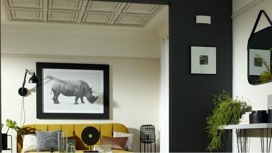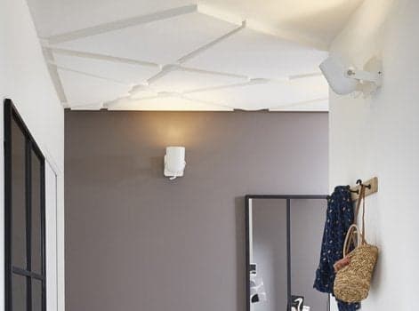 Les dalles en polystyrène viennent cacher discrètement les aspérités du plafond. Posés par-dessus, les petits défauts disparaissent et révèlent une jolie décoration. Dans un couloir, c'est l'option idéale. Simple et efficace.