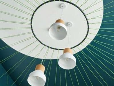 Avec les fils "sandow standers", vous pouvez transformer votre salon en galerie d'art. Pas d'araignée au plafond, mais un anneau retenu par des dizaines de filins colorés qui dessinent un soleil graphique. Si vous fixez au centre une suspension lumineuse, l'installation change de dimension pour créer une décoration vivante et rayonnante dans la pièce à chaque fois que vous allumez la lumière. Ce n'est qu'un exemple parmi d'autres : avec ces câbles, vous pouvez tout réaliser.