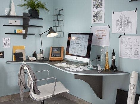 Peinture, papier peint, luminaires… concevez l’espace comme un véritable atout décoratif, car oui, un bureau peut être joli !