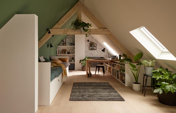 Des combles aménagés en espace de travail modulable et en dortoir