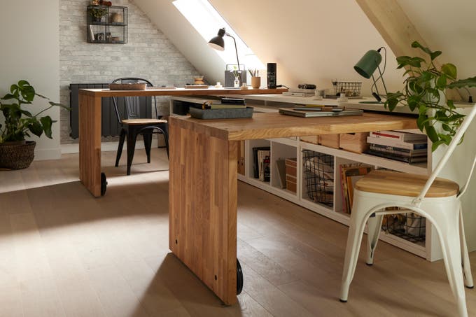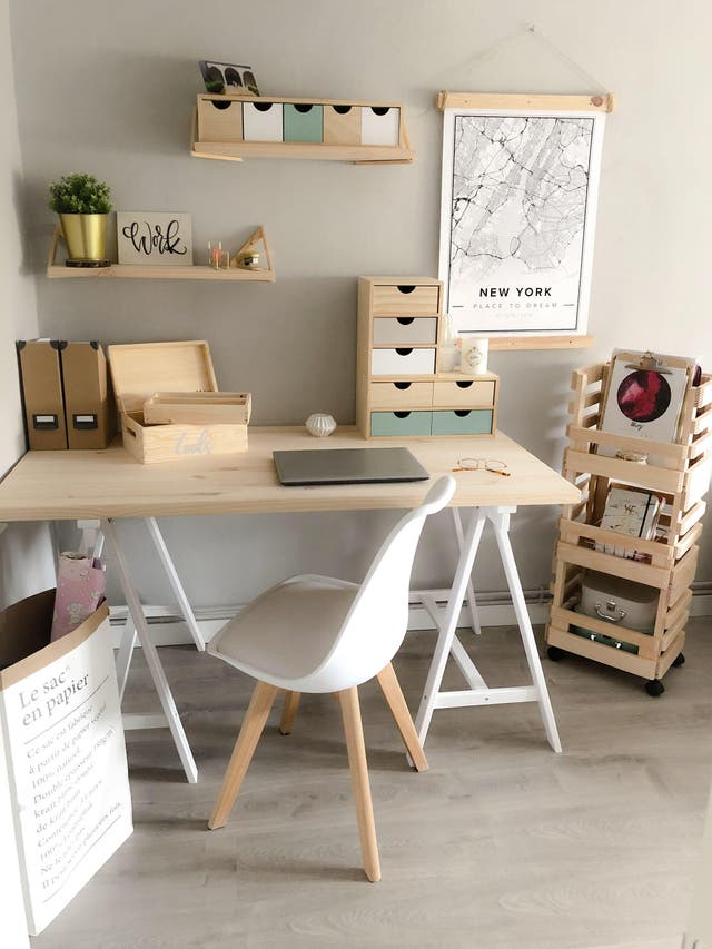 C'est simple mais redoutablement efficace. Une planche, des tréteaux et le tour est joué. L'avantage ? C'est le bureau facile à bouger qu'on déplace selon ses envies. Idéal aussi quand on n'est pas sûr de soi ou de la configuration de la pièce.