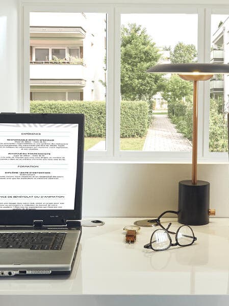 Autre élément important à la longue : la lumière. Pour éviter les contrastes épuisants, prévoyez une lampe de bureau aux heures les plus sombres de la journée.