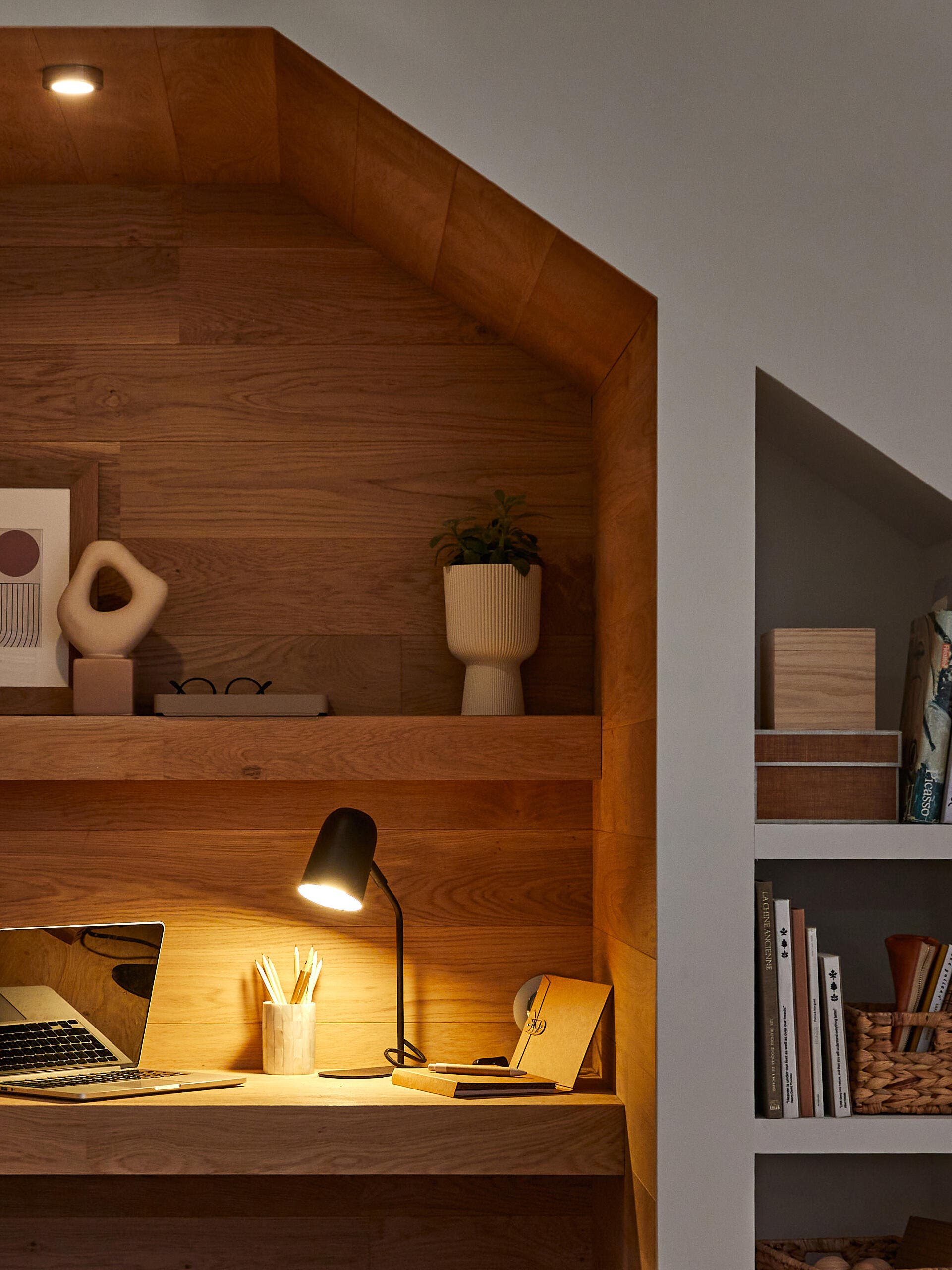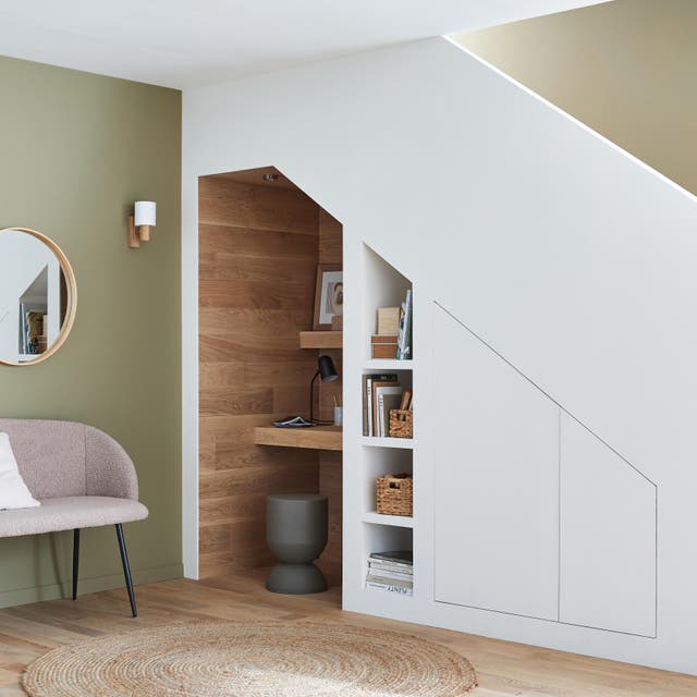 Cet espace souvent inutilisé peut être aménagé en un petit bureau confortable.