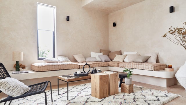 Si vous voulez que votre pièce à vivre reflète votre personnalité, donnez-lui de la couleur et de l’élégance en la décorant dans un style plein de caractère qui mixe les influences ! Quelques aménagements sur mesure et une association de belles matières vont lui donner un charme inédit qui réconcilie authenticité et modernité. La recette ? Un mur de séparation multifonction pour structurer, une banquette en L maçonnée pour personnaliser et un mélange d’éléments design et de pièces artisanales : l’ensemble crée un univers cosy et lumineux où la minéralité et le bois, brut ou brûlé, se côtoient dans une ambiance tout en beiges, gris et noir. Découvrez comment vous en inspirer.