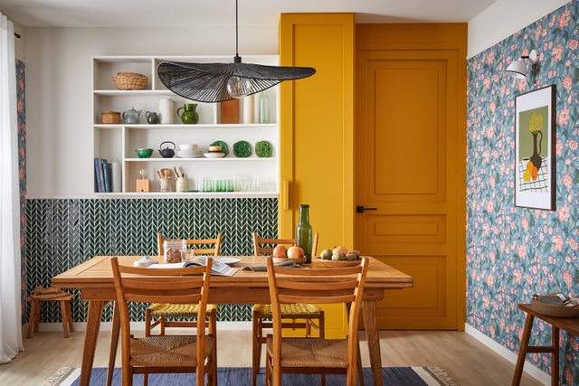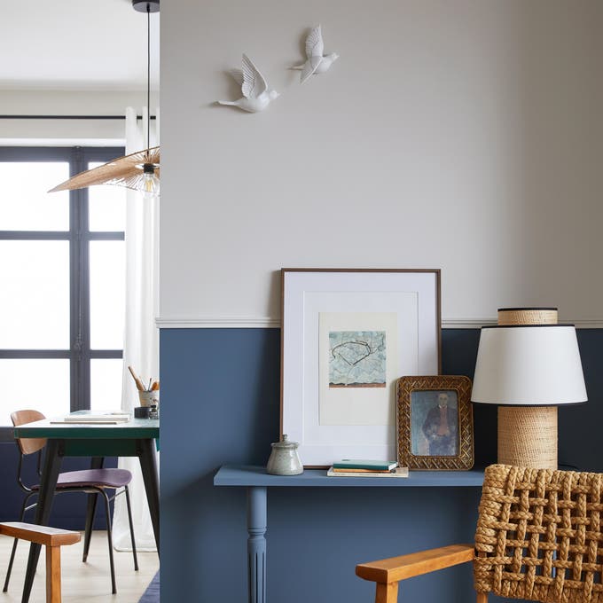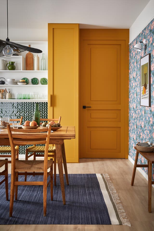 Le bleu et le jaune sont les couleurs phares de cette tendance New Cottage. Mais pas n’importe quel bleu ni n’importe quel jaune ! Les teintes choisies sont à la fois lumineuses et subtiles afin d'apporter autant de douceur que de renouveau. Un beau jaune pollen illumine et réchauffe immédiatement un intérieur. On peut l’utiliser en petite touche, sur une porte ou pour délimiter un espace. Les bleus tendres sont présents sans être dominants, ils se mêlent à d’autres teintes neutres comme le blanc nuage.