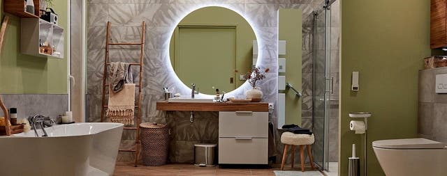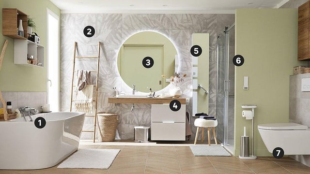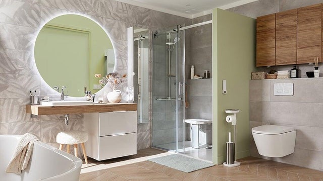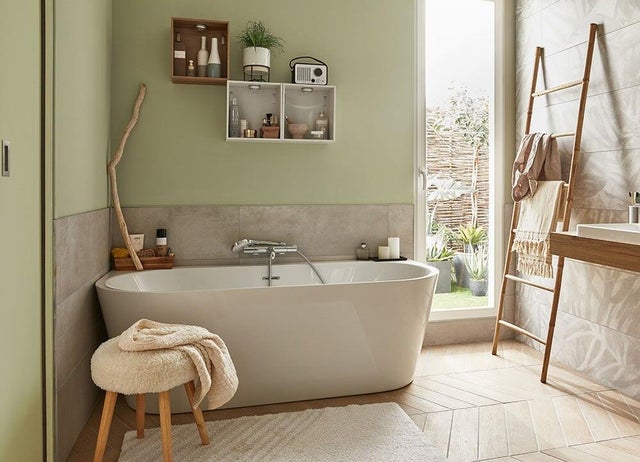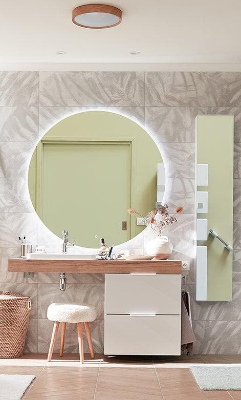 Pour se sentir à l’aise dans la salle de bains, on soigne sa fonctionnalité mais aussi sa déco. On crée une atmosphère à la fois chaleureuse et rafraîchissante basée sur une palette de teintes douces et grisées, déclinées du beige au vert.