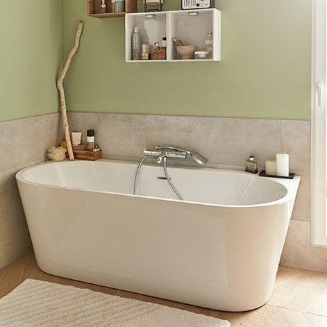 Ce type de baignoire permet de disposer d’une plage de dépose, pratique pour avoir à portée de main produits de toilette et accessoires de bain.