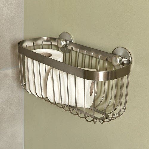 Pour avoir toujours sous la main quelques rouleaux en réserve, on détourne un panier de douche que l’on fixe à bonne hauteur.