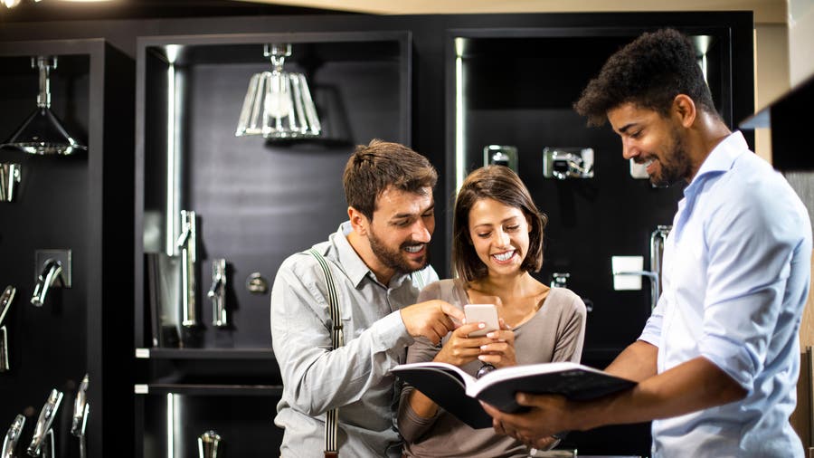 Pour le coin vasque, on prévoit un aménagement polyvalent et pratique, avec un plan de toilette large et profond que l’on place à une hauteur qui permet de l’utiliser debout ou en position assise.