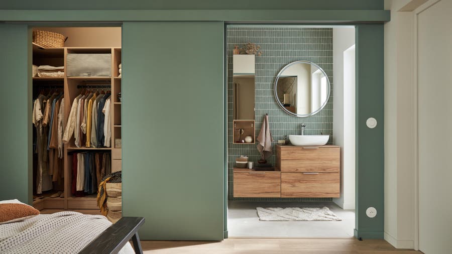 C’est exactement le défi que relève cette salle de bain à l’esprit bohème. Son secret ? Avoir pensé aux besoins de chacun. La baignoire et son pare-douche permet ainsi aux enfants de prendre un bain, et aux adultes de prendre une douche. La double vasque fluidifie la circulation soir et matin.