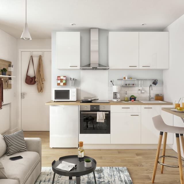 Quelle que soit la couleur claire que vous choisissez, plus vous ajouterez du mobilier ou de la déco dans les mêmes tons, plus la pièce paraîtra grande. La bonne idée ? Utilisez des nuances différentes d’une même couleur pour créer une sorte de monochrome qui repousse les murs. Agrandissement visuel garanti !