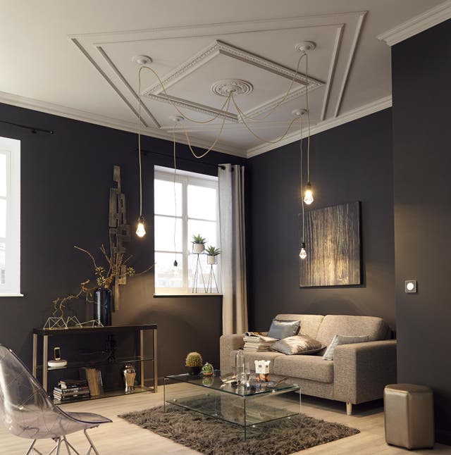 Vous avez une pièce à l’ancienne avec une grande hauteur sous plafond ? Pour corriger cela, vous pouvez tout simplement repeindre le plafond dans une couleur sombre qui contrastera avec la couleur claire des murs. Vous retrouverez ainsi une impression de plafond plus bas.