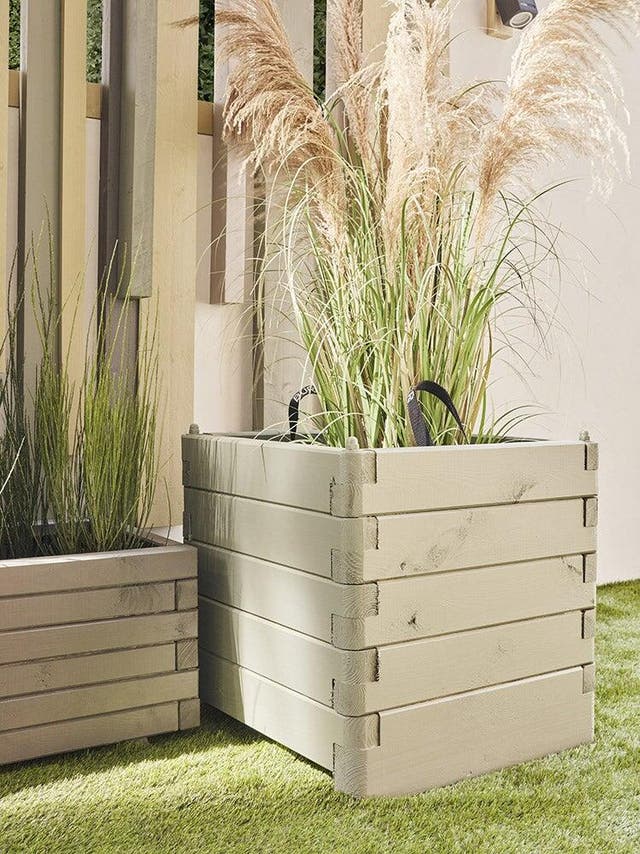 Côté pots, on pense aux jardinières en bois brut que l’on peut relooker et assortir à la clôture en utilisant l’une des peintures spéciales bois extérieur utilisées.