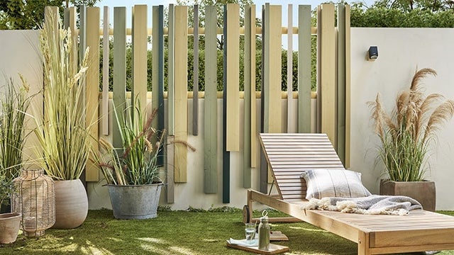 On complète le style nature de la clôture en privilégiant les matières naturelles et les tons neutres pour la déco et le mobilier : transat en bois naturel, pots en terre cuite ou en zinc, lanternes en bambou, coussins et plaids en coton ou en lin, etc.