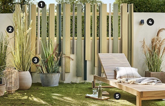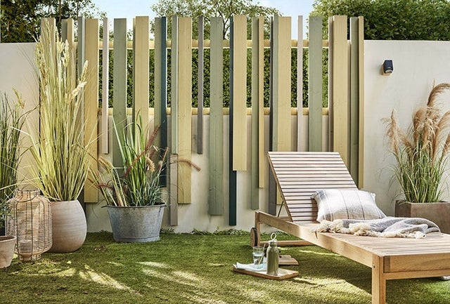 On a tous envie de vivre au jardin sans se soucier du regard des passants ou des voisins. Alors, que faire lorsque le muret de clôture n’est pas suffisamment haut et ne filtre pas la vue ? On adopte une solution à la fois adaptable, économique et facilement réalisable par un bricoleur débutant.À l’aide de tasseaux, neufs ou récupérés, on crée une clôture en bois ajourée qui laisse passer la lumière tout en filtrant la vue. Son originalité ? Elle est réalisée grâce à des tasseaux de différentes longueurs et sections. Peinte dans un camaïeu de vert, la nouvelle clôture s’intègre parfaitement au jardin dans une belle ambiance nature.