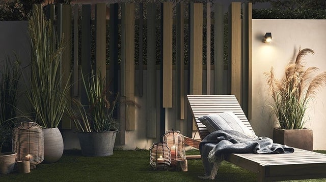 Pour profiter du jardin à la nuit tombée, on installe une applique extérieure sur le mur existant. Un modèle type spot sera idéal pour mettre en valeur la végétation.