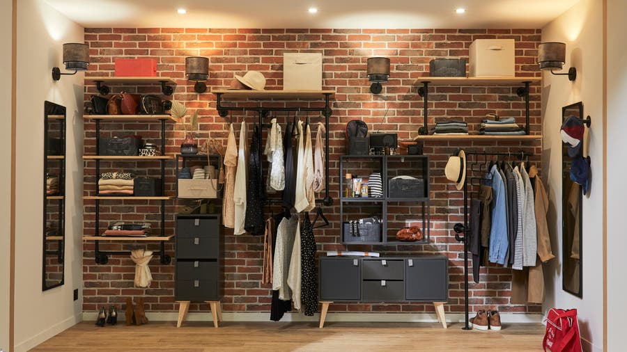 Quels meubles pour composer ce dressing avec assez de rangements pour tous les vêtements ?