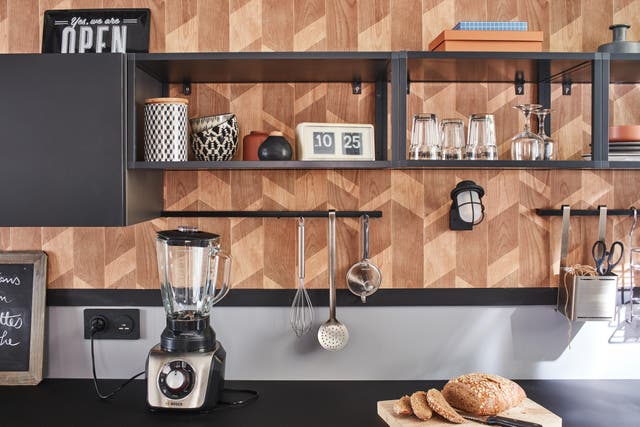 La nouveauté ? On peut mettre du papier peint dans la cuisine, sur un seul mur. On voit de plus en plus des coins cosy pour prendre le repas sur le pouce, avec un mur recouvert de papier peint, une table et des fauteuils ou même une banquette pour prendre le thé tranquillement… Les papiers peints végétaux ou les papiers peints géométriques chics et précieux peuvent donner une vraie personnalité à votre cuisine.