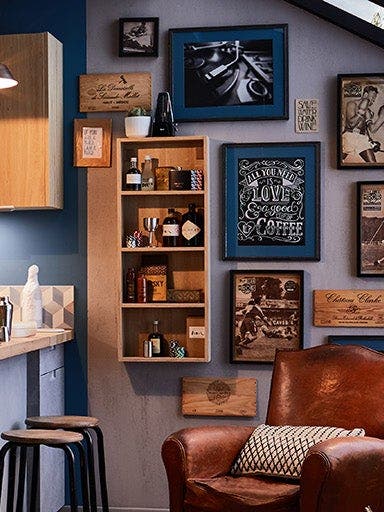 Pour un style industriel, misez sur des contrastes : le noir graphique, du bois brut comme la nuance chêne par exemple, associés aux effets béton dans toutes les nuances de gris. Le vert kaki, le jaune curry ou l’orange par touches sont aussi des bonnes options.