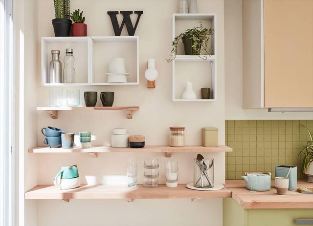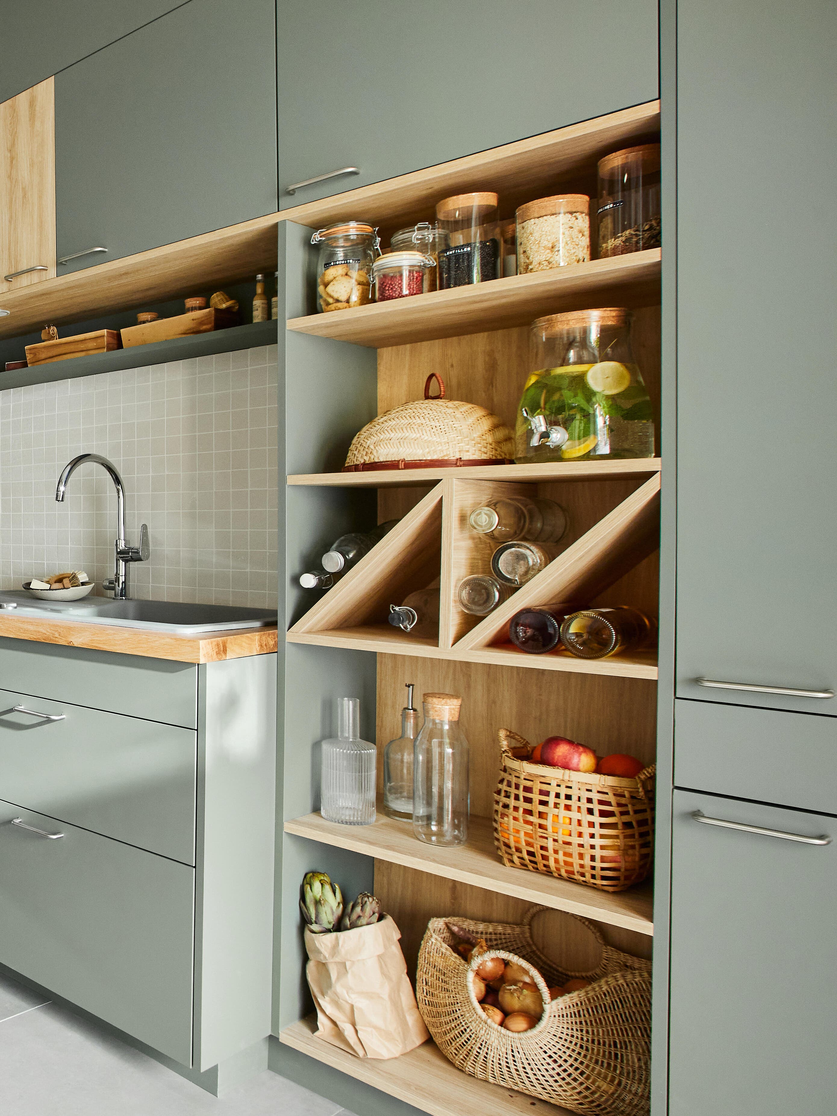 On aime aussi les étagères et les rangements hauts ouverts qui sont aussi pratiques que déco pour exposer plantes et bocaux. Ils amènent de la chaleur s’ils sont en bois, du caractère s’ils sont noirs.
