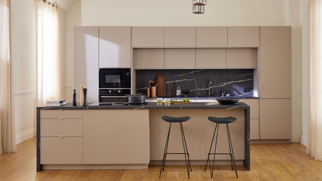 La bonne idée du moment ? La créativité ! Vous pouvez mixer différentes façades dans une même cuisine. On peut choisir deux couleurs tranchées comme le bois et le noir par exemple ou alors plusieurs nuances proches avec des effets de matières différents : un beige sable sur les meubles bas, un bois clair sur la colonne et un taupe sur les meubles hauts par exemple.