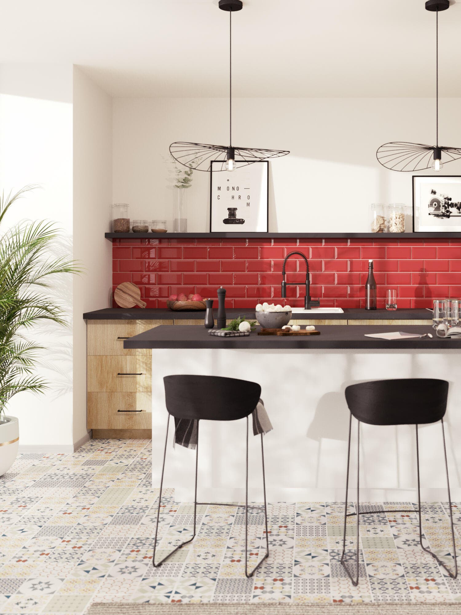 Pour la crédence, vous pouvez laisser libre cours à votre fantaisie. Cette zone qui protège les murs est aussi un excellent moyen de dynamiser la décoration de la cuisine. Côté carrelage, vous avez le choix entre des carreaux de ciment, des zelliges aux finitions artisanales, de la mosaïque ou toute autre faïence colorée avec ou sans motif…