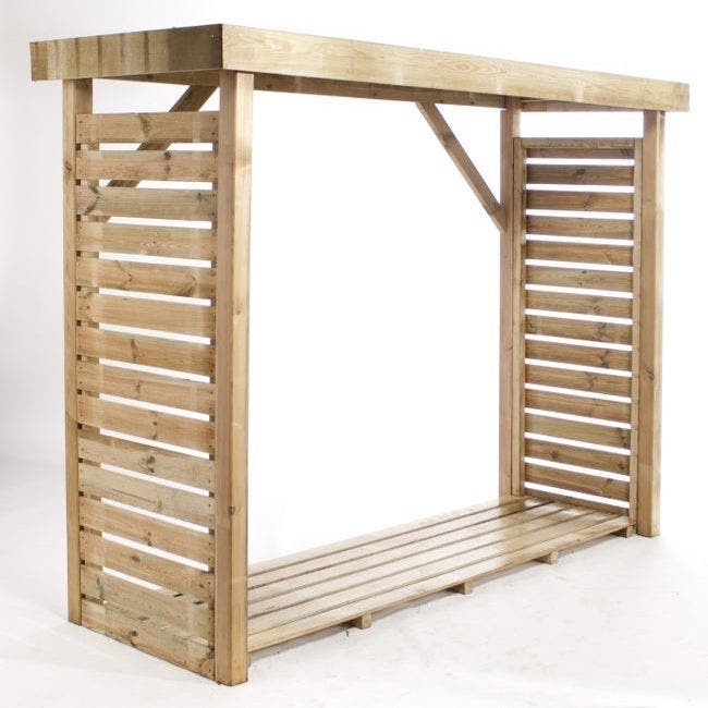 Idéalement calé contre l’un des pignons de l’abri, le range-bûche permet de stocker la réserve de bois de l’année.
