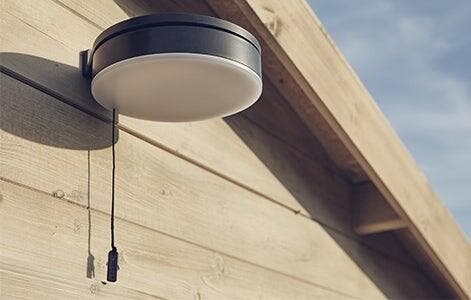 Au-dessus du composteur, on place une applique à LED intégrée à recharge solaire. Pratique, elle se décroche de son socle pour être rapprochée de la zone à éclairer.