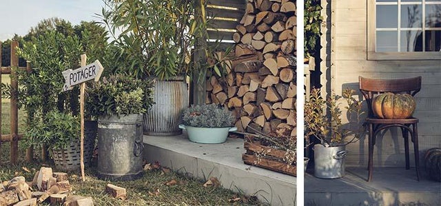 Pour renforcer le style jardin bohème, on opte pour des accessoires rétro que l’on chine : pots et bassines en zinc, en fer blanc ou en tôle émaillée, chaises de bistrot vintage, cagettes en bois, paniers, etc.