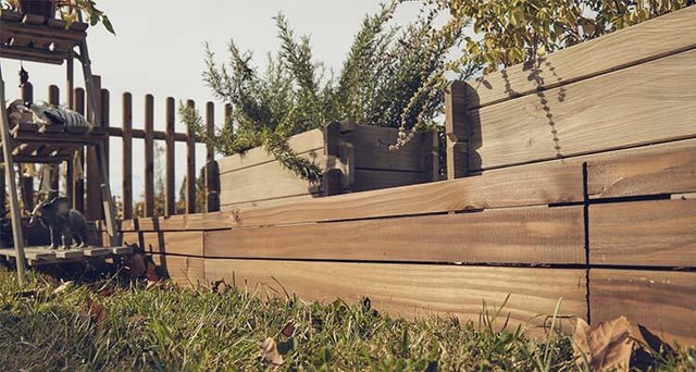 La zone du potager est matérialisée par des bordures en bois. Une touche nature supplémentaire et un entretien facilité (pas de mélange d’herbe et de terre).