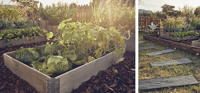 On installe des carrés potagers de différentes tailles et formes, avec ou sans compartiments, surélevés ou non… de quoi se composer un ensemble adapté à ses besoins et à la surface disponible.